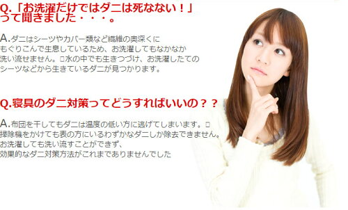 ダニをよせつけない効果をシーツやカバーに持たせ、ダニが布団からシーツ類に移ったり、タタミやマットから寝具類に侵入するのを防ぎます。